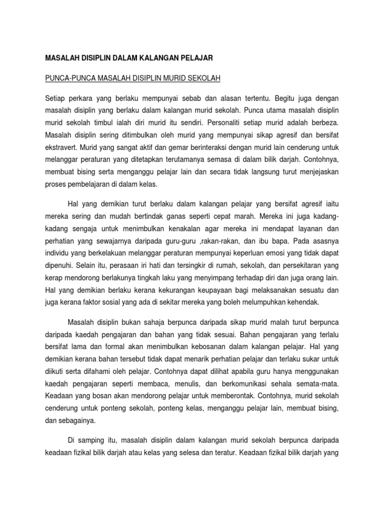 Masalah Disiplin Dalam Kalangan Pelajar Semakin Menjadi Jadi Sejak Kebelakangan Ini Bincangkan Punca Punca Berlaku Masalah Disiplin Dalam Kalangan Pelajar Pdf