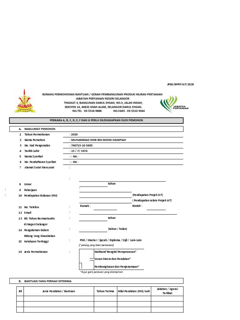 Pertaniain Borang Permohonan Projek 2021 Iat Words Pdf