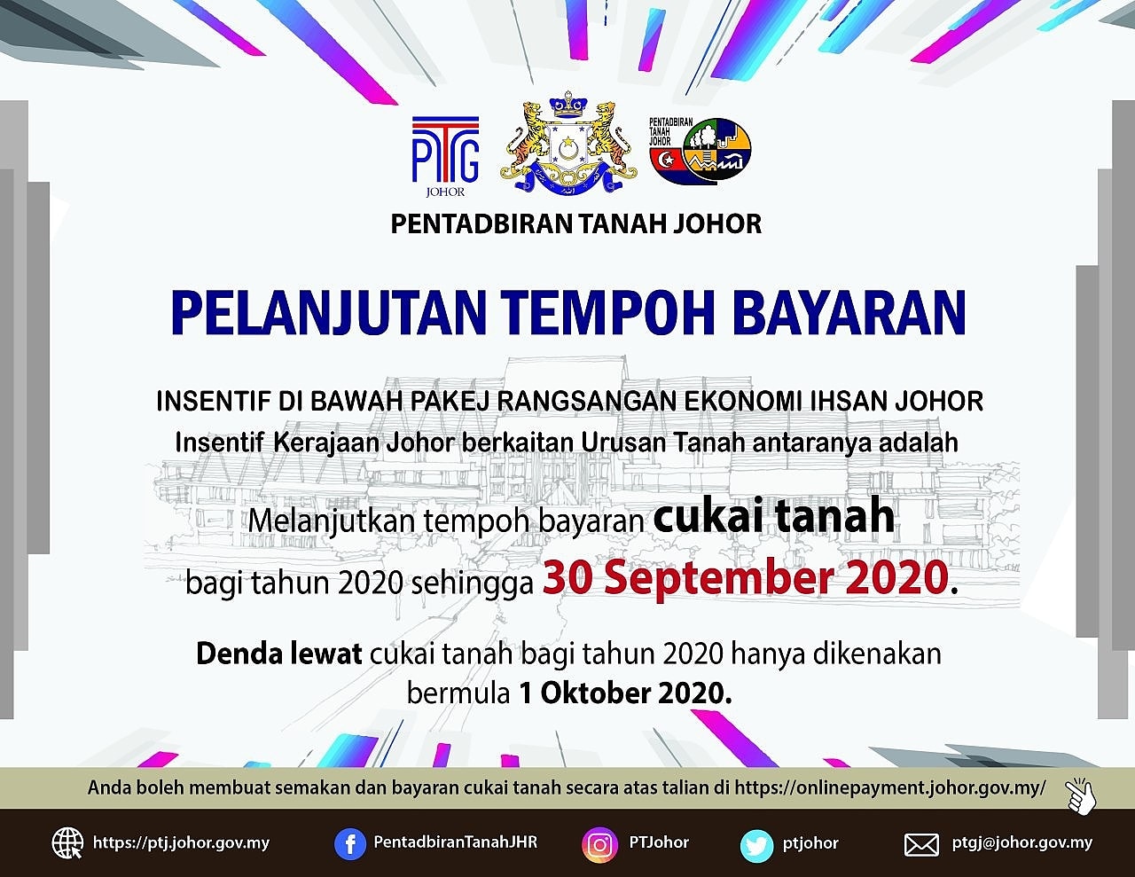 Pejabat Tanah Johor Bahru Makluman Pelanjutan Tempoh Bayaran Cukai Tanah Bagi Tahun 2020 Adalah Sehingga 30 September 2020 Facebook